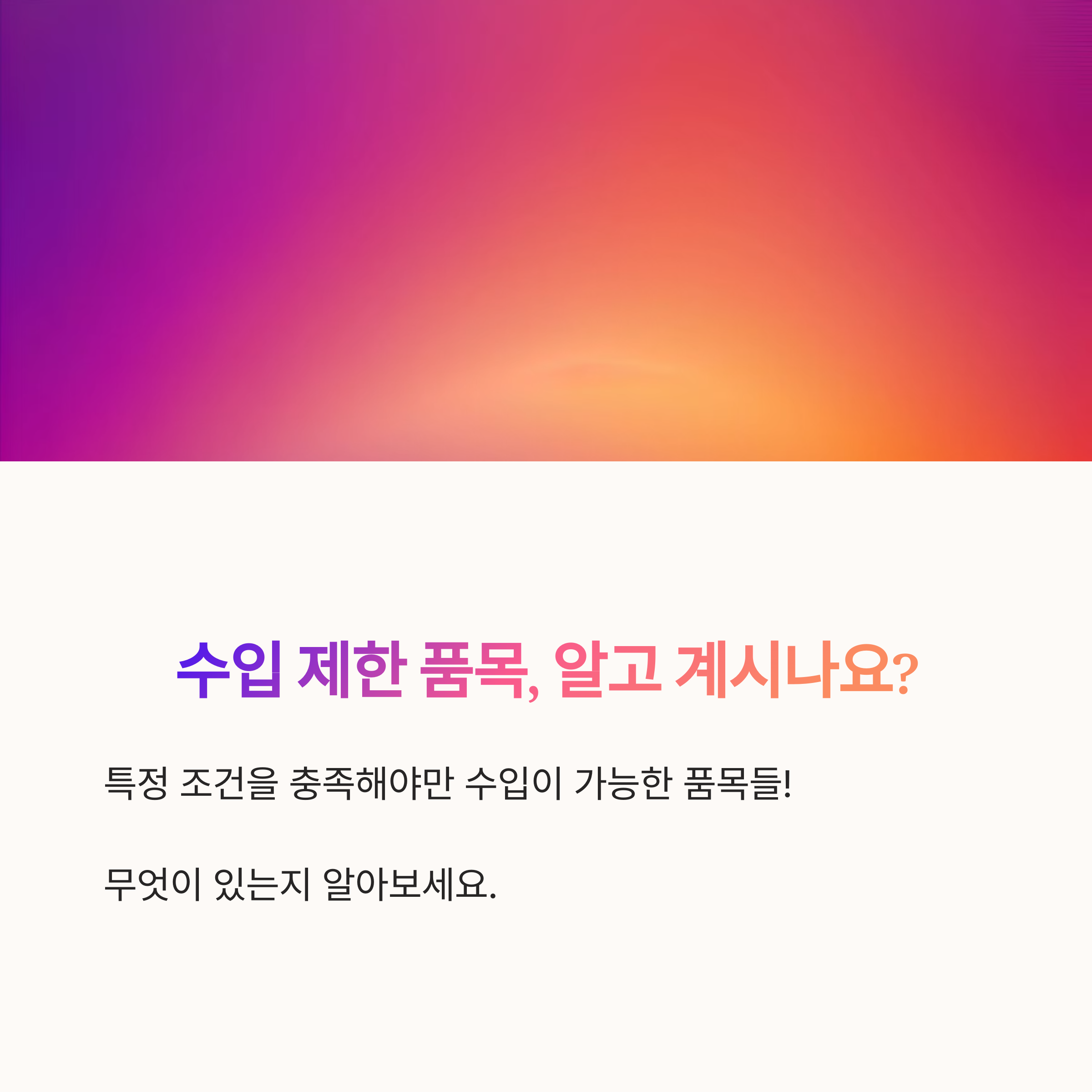 수입 제한 품목은 허가, 등록, 검사 등의 조건이 충족될 경우에만 수입이 가능한 품목입니다.